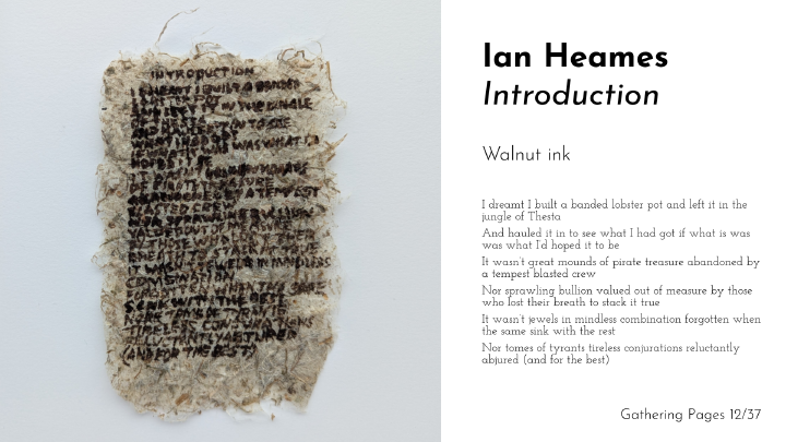 I dreamt I built a banded lobster pot and left it in the jungle of Thesta // And hauled it in to see what I had got if what is was was what I'd hoped it to be // It wasn't great mounds of pirate treasure abandoned by a tempest blasted crew // Nor sprawling bullion valued out of measure by those who lost their breath to stack it true // It wasn't jewels in mindless combination forgotten when the same sink with the rest // Nor tomes of tyrants tireless conjurations reluctantly abjured (and for the best)